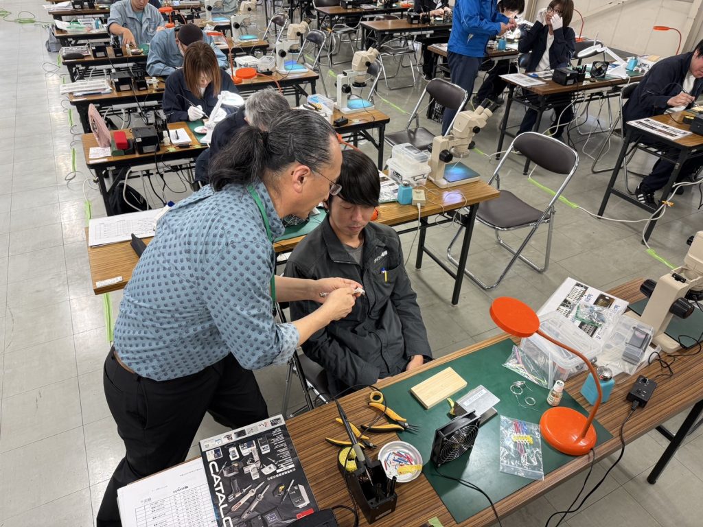 社内ではんだ付けの勉強をすることになり、指導に当たることになったため2名で